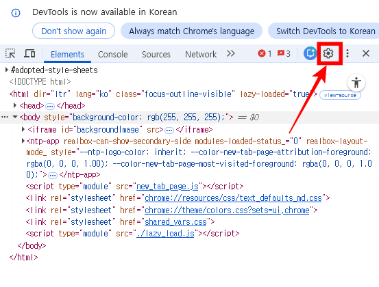 어떤 브라우저를 사용하던지 방법은 비슷하다. 먼저 F12를 눌러 디버그 창을 열고 설정 버튼을 찾는다.