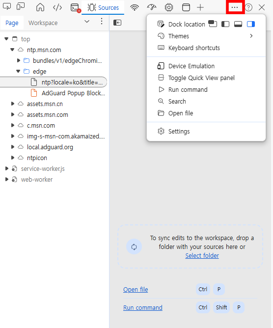 엣지 또한 다를 것 없다. F12를 누른 뒤 위 사진의 점 세 개를 클릭하면 맨 아래 Settings, 즉 설정 버튼을 찾을 수 있다.